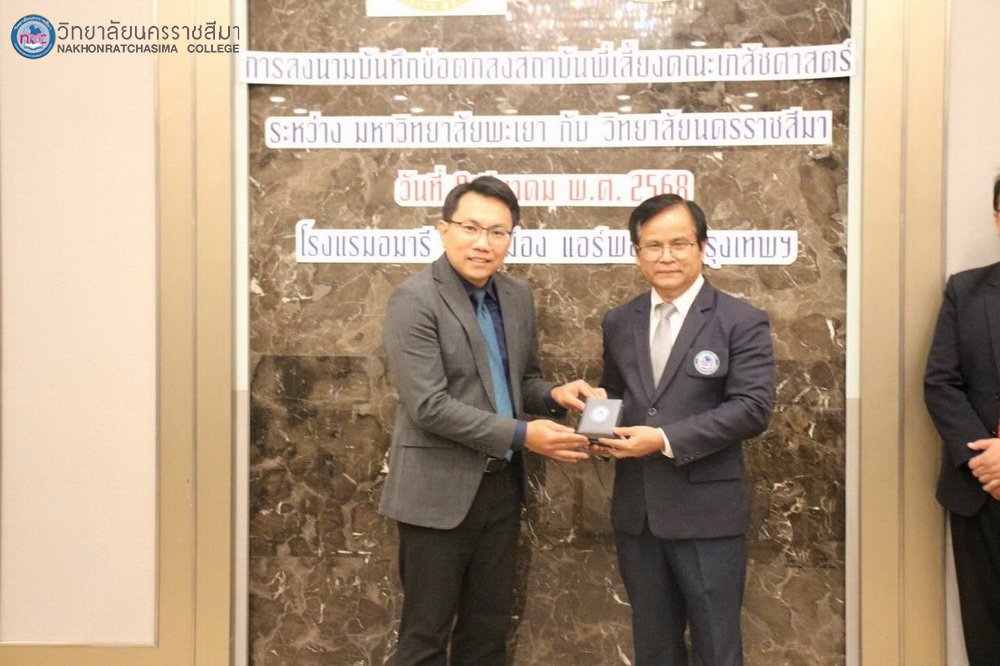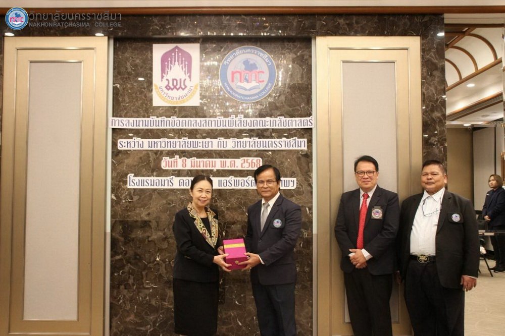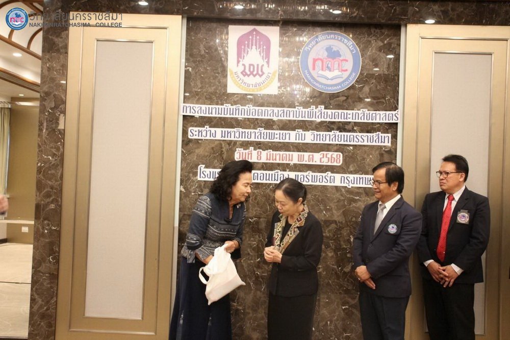 รายละเอียดกิจกรรม : เมื่อวันที่ 8 มีนาคม 2568 ดร.ชนากานต์ ยืนยง ผู้รับใบอนุญาตวิทยาลัยนครราชสีมา รองศาสตราจารย์ ดร.วิภาส ทองสุทธิ์ อธิการบดี วิทยาลัยนครราชสีมา และรองศาสตราจารย์ ดร.สุภกร พงศบางโพธ์ อธิการบดี มหาวิทยาลัยพะเยา ร่วมลงนามบันทึกข้อตกลงความร่วมมือ ณ ห้องเลเบลแอร์ โรงแรมอมารี แอร์พอร์ต ดอนเมือง กรุงเทพมหานคร
